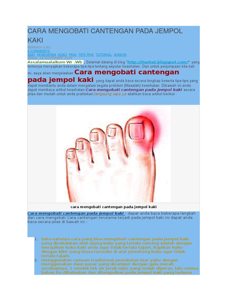 Download Cara Mengobati Penyakit Cantengan Di Jempol Kaki. Cantengan atau yang biasa disebut dengan paronychia adalah sebuah masalah peradangan yang terjadi pada area kuku di jempol kaki maupun tangan. Untuk mengatasinya, anda dapat melakukan sendiri perawatan sederhana di rumah.